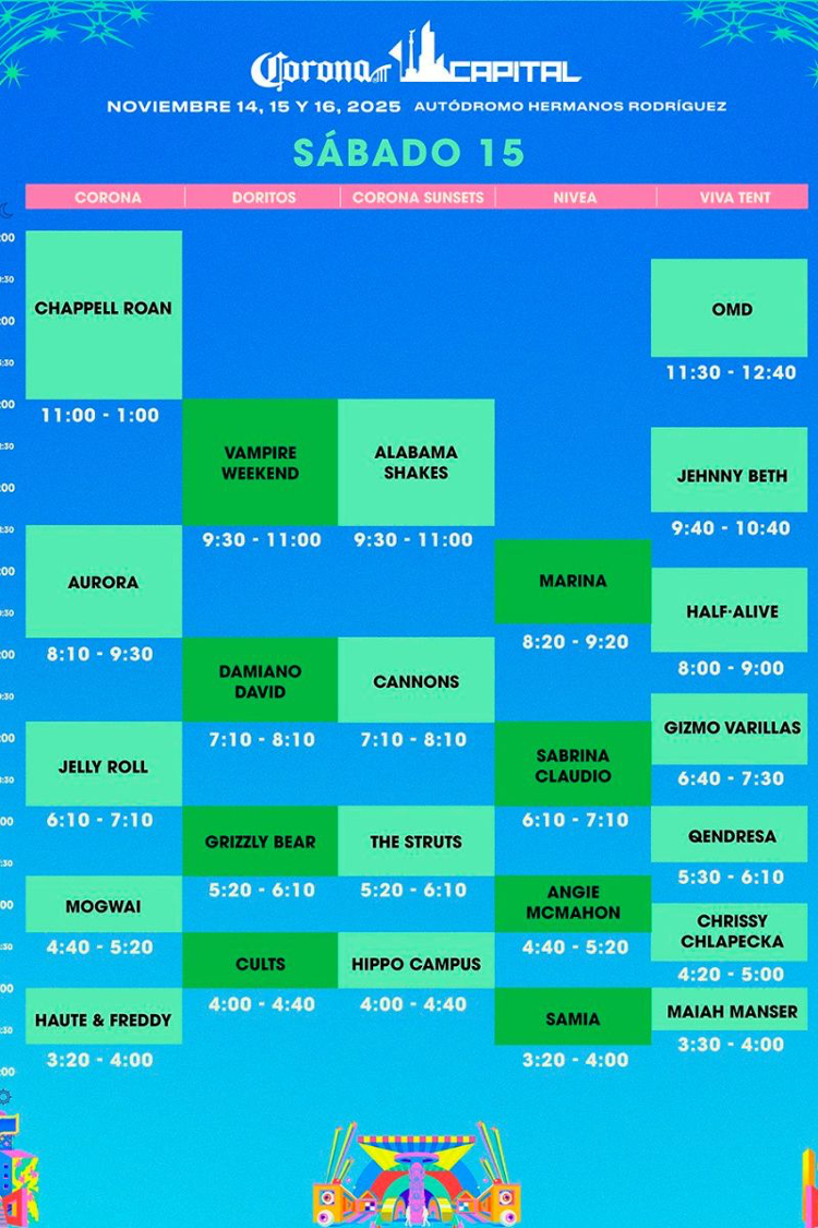 Se acerca el gran fin de semana del Corona Capital 2025 en la Ciudad de México y ya se publicó el detalle de los horarios — lo que significa que ha llegado el momento de planear tu agenda para no perderte a tus bandas favoritas. Pero ojo: hay varios empalmes que van a poner a prueba tus piernas y tu elección. Aquí te lo cuento con todo lo que necesitas saber.